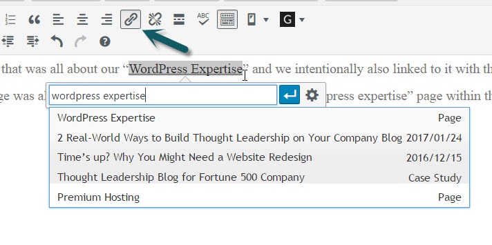 In WordPress adding a link to a piece of content within the same site is stunningly easy.